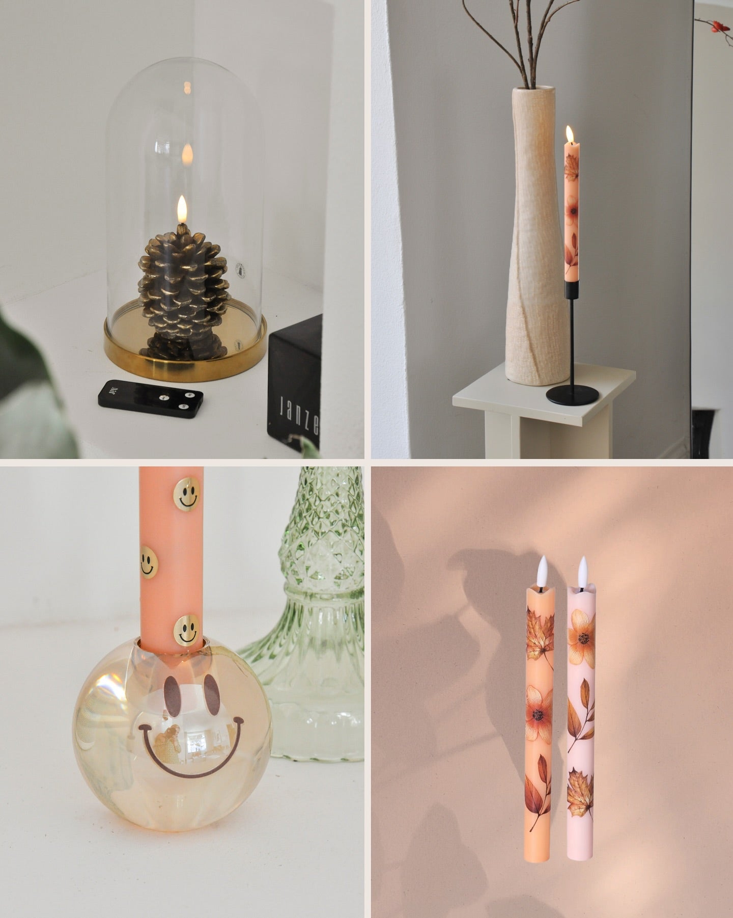De mix van van LED kaarsen zorgt voor een speelse, herfstige uitstraling. De kaarsen zijn gemaakt van echte wax en afgewerkt met oog voor detail, waardoor ze nauwelijks te onderscheiden zijn van echte kaarsen.