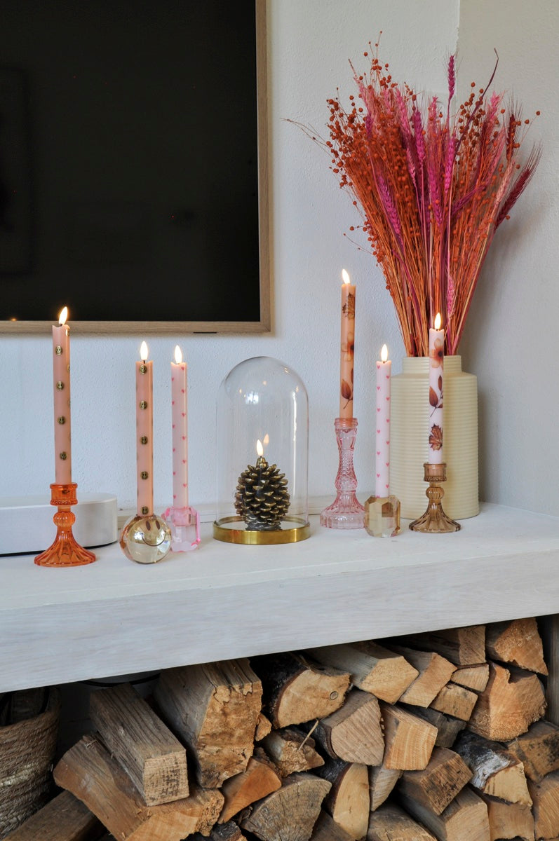 • Complete set: 2 LED dinerkaarsen in Wild Flower design + 1 LED dennenappel