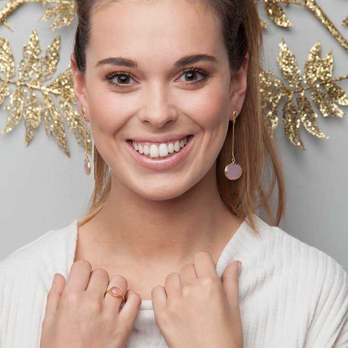 Met de hand vervaardigd van verguld messing en natuurlijke halfedelstenen, waardoor elk paar uniek is in kleur en vorm.