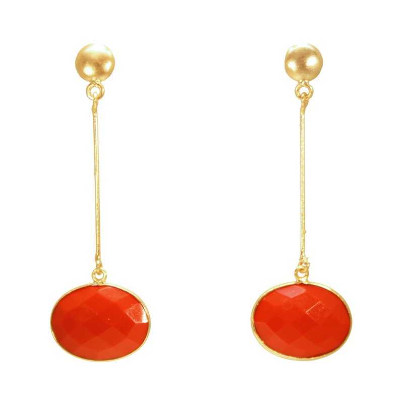 Stijlvolle, elegante oorbellen met een verticale staaf en een hangende natuursteen. De combinatie van goud en rood zorgt voor een moderne, verfijnde uitstraling die elke look compleet maakt.