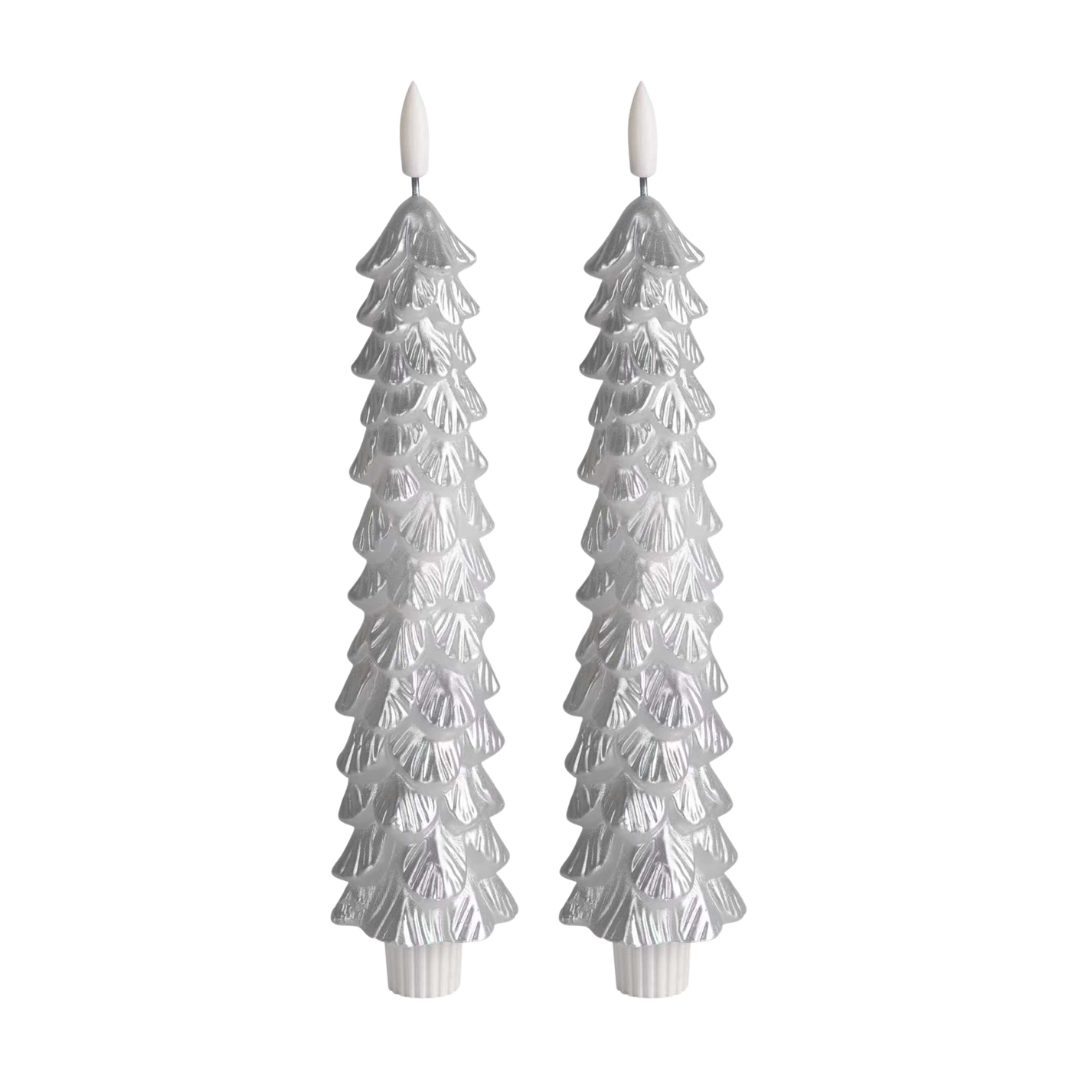 LED X-Mas Tree Candle Silver RC - Set of 2 (editie 2025)